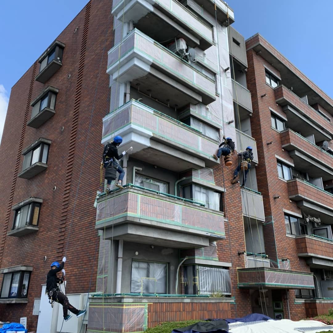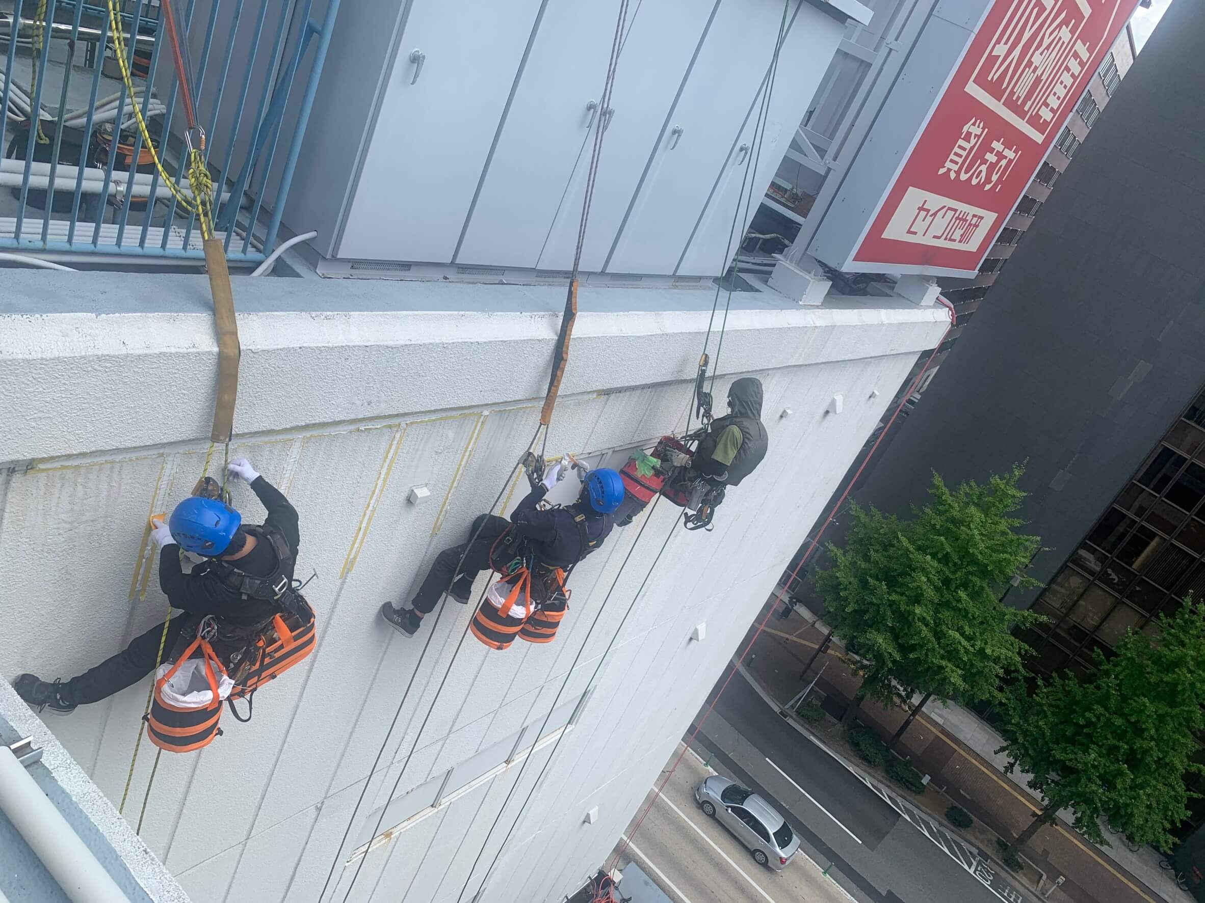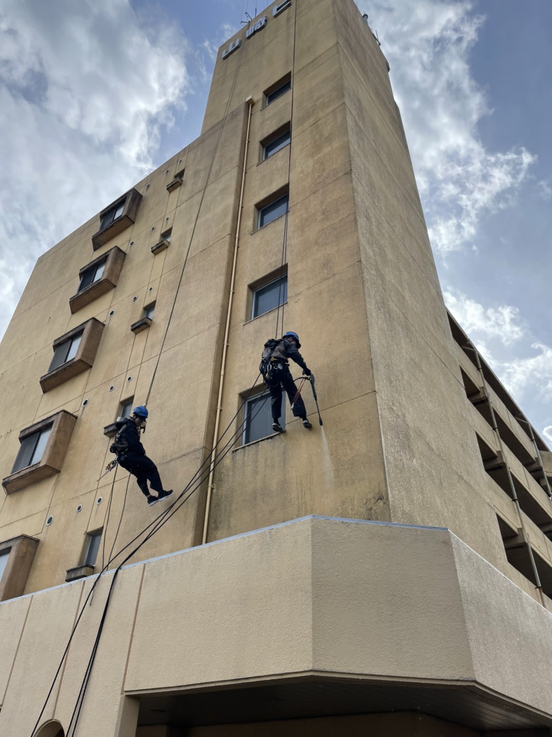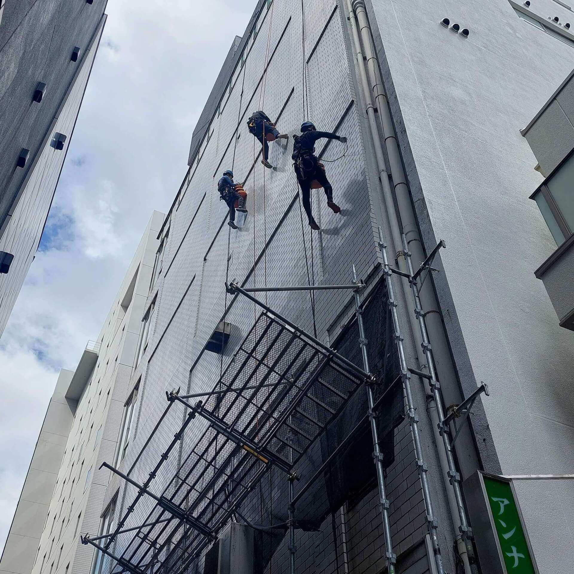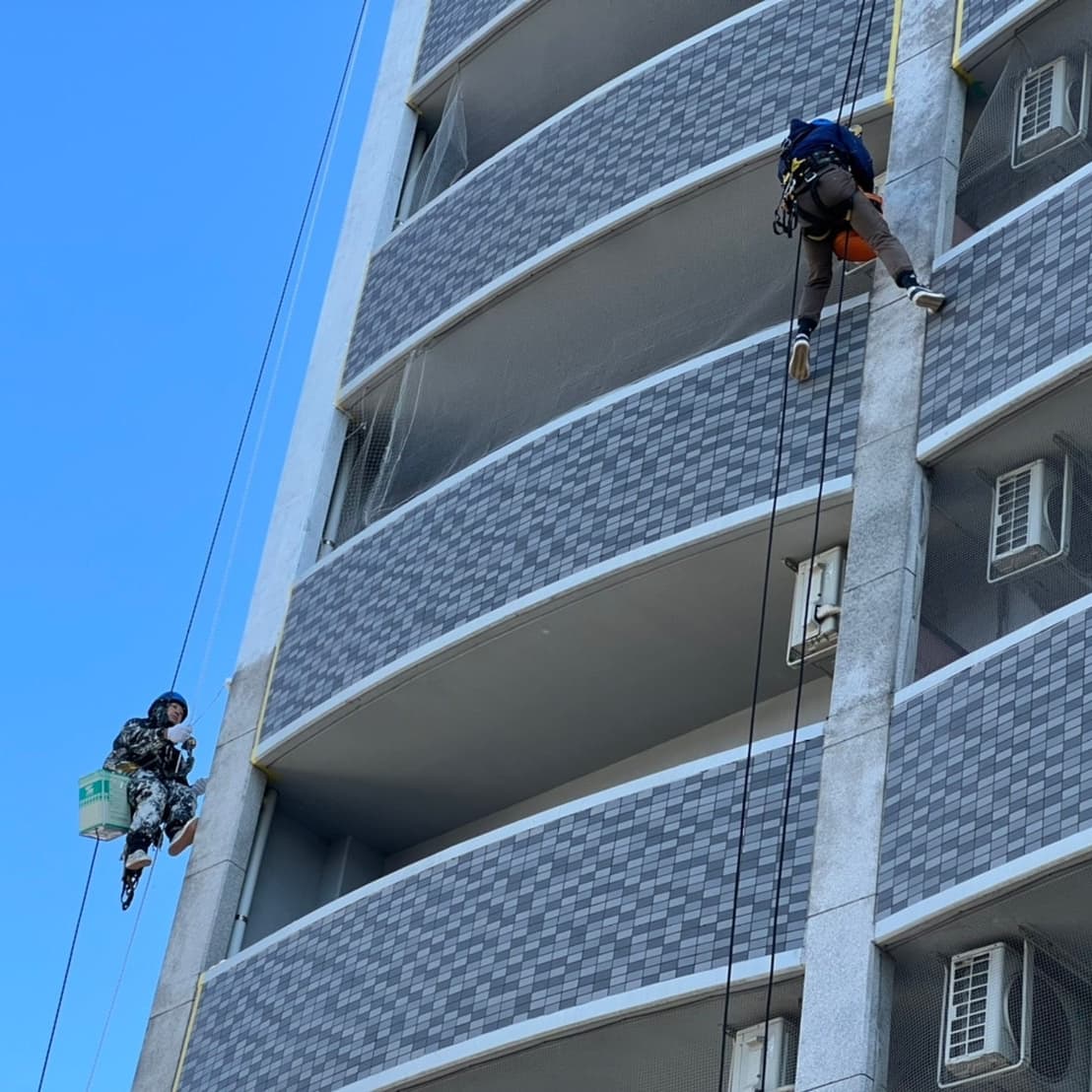 本来、足場での塗装工事のイメージがありましたが、ロープアクセスにより低コストでの作業が可能になります。