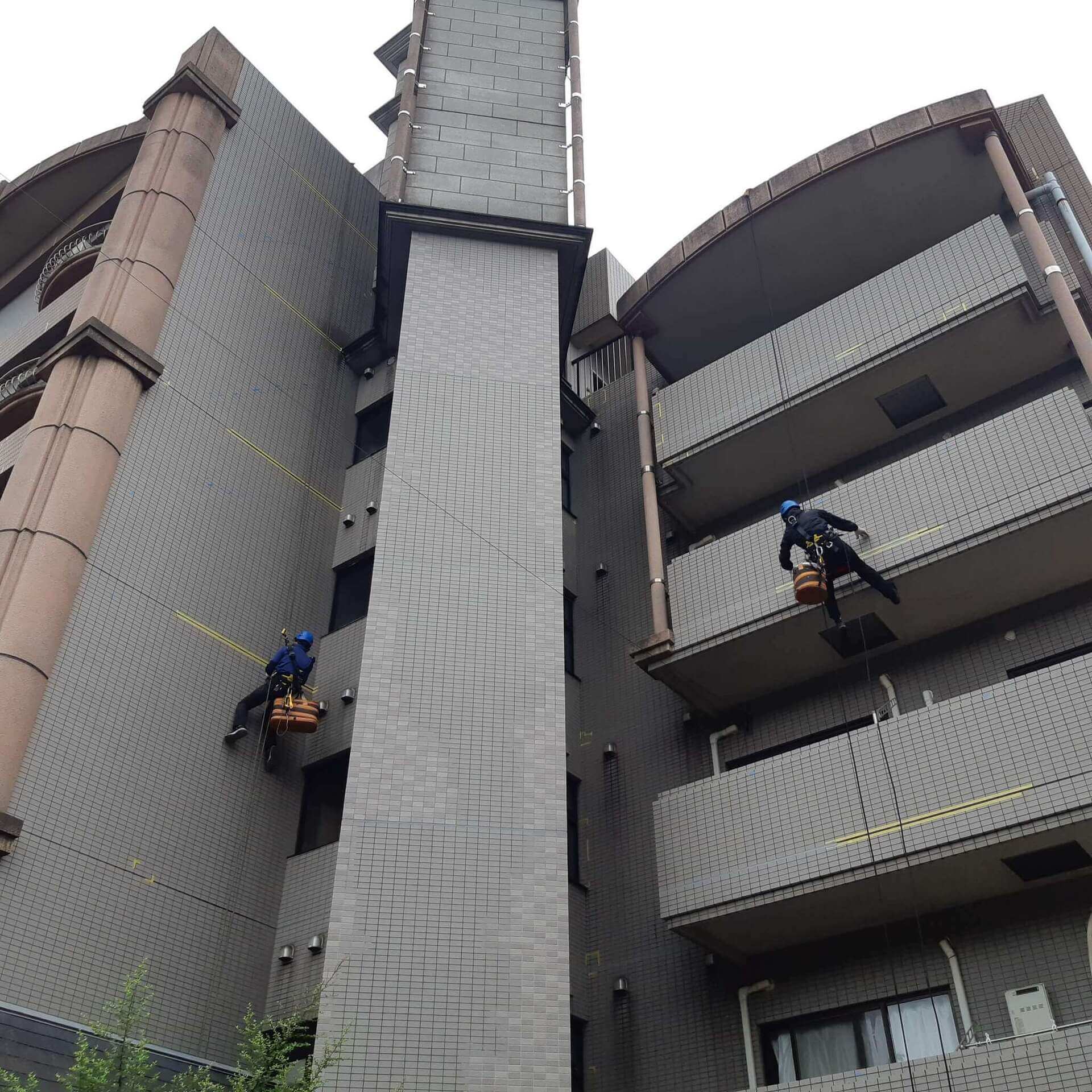 建築仕上げ診断技術者が調査致します。 意図した場所を直接検査が可能なので高い正確性を誇るとともに、 ロープアクセスによる施工の為低価格での調査となります。