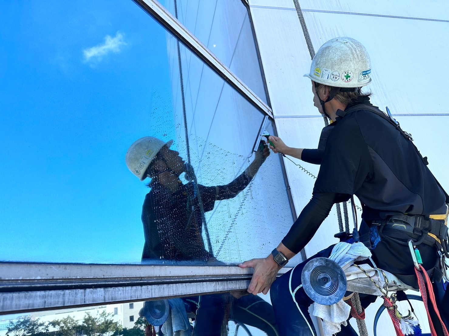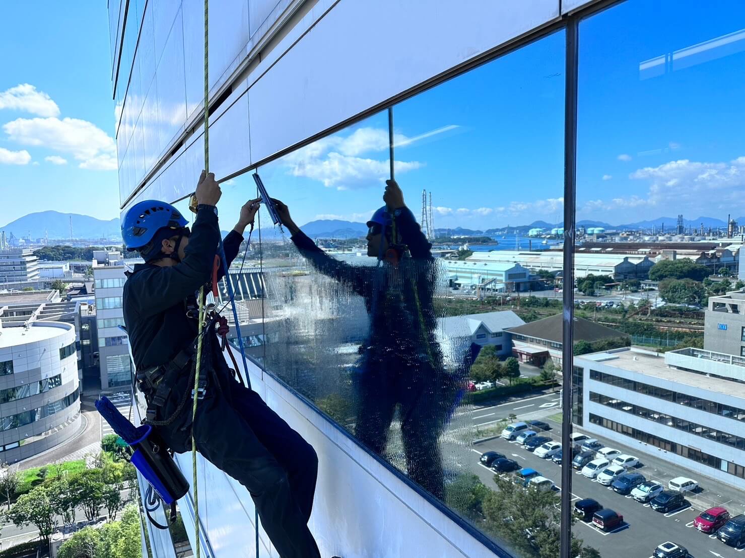 高層ビルのガラスクリーニングなど、日常的な掃除が難しい高所の清掃を行います。