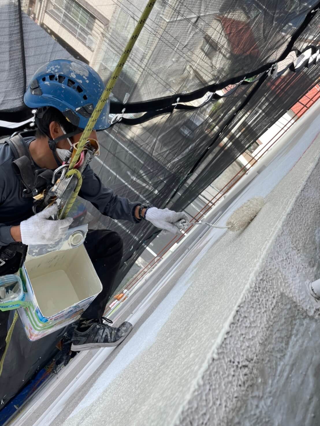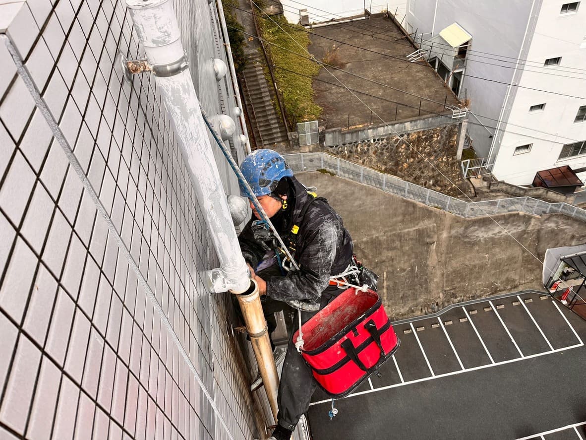 本来、足場での塗装工事のイメージがありましたが、ロープアクセスにより低コストでの作業が可能になります。