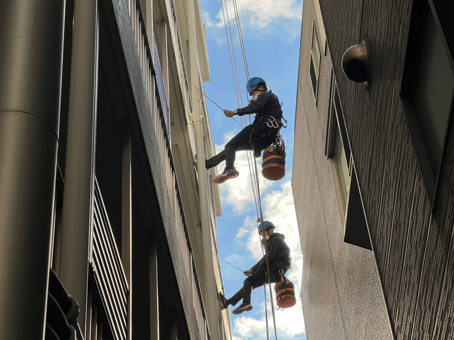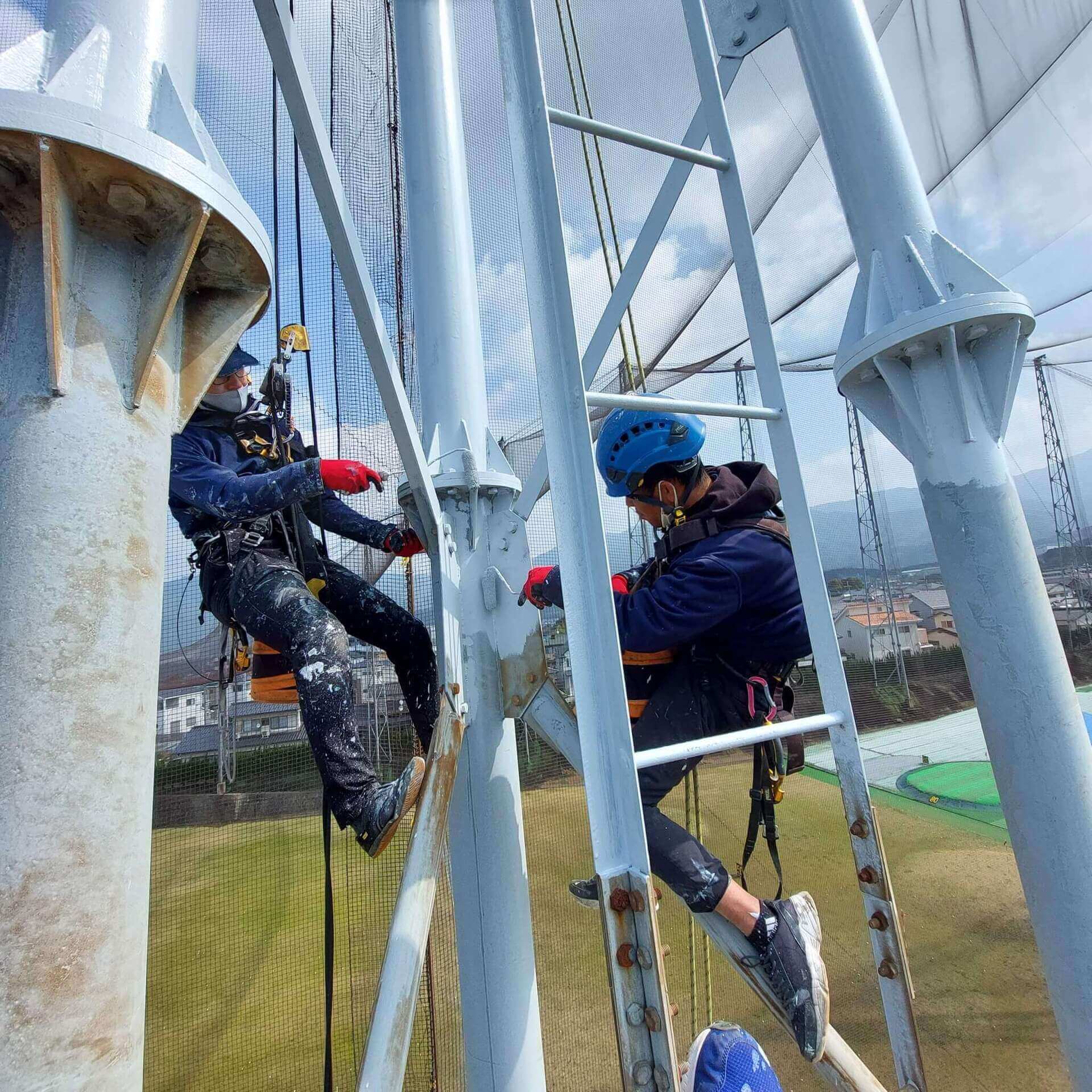 本来、足場での塗装工事のイメージがありましたが、ロープアクセスにより低コストでの作業が可能になります。
